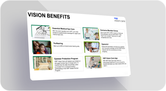VISION BENEFITS Essential Medical Eye Care Exclusive Member Extras ® Get an extra $20 or $40 to spend on Featured With the vision benefits from VSP , you have access to supplemental coverage for urgent and Frame Brands, such as Calvin Klein®, Cole ® ® medical eye care. Haan and Lacoste . Discounts on Lasik, sunglasses and more. ® TruHearing Eyeconic Save up to 60% on brand-name hearing aids. Eyeconic® seamlessly connects your eyewear, your insurance coverage, and the VSP® doctor network with the convenience of online shopping. Eyewear Protection Program VSP Vision Care App VSP® Vision Care will replace your broken or With VSP Vision Care App, there is a damaged frames free of charge within 12 personalized dashboard, so you can get the months from the date of purchase, when benefit information you need, exactly when you purchased from a practice location need it. participating in the VSP® Global Premier Program [ 16 ]