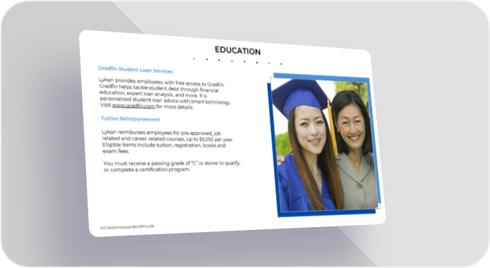 EDUCATION Gradfin Student Loan Services ABC provides employees with free access to Gradfin. Gradfinhelps tackle student debt through financial education, expert loan analysis, and more. It is personalized student loan advice with smart technology. www.gradfin.comfor more details. Visit Tuition Reimbursement ABC reimburses employees for pre-approved, job related and career related courses, up to $5,250 per year. Eligible items include tuition, registration, books and exam fees. You must receive a passing grade of āCā or above to qualify, or complete a certification program. 19// 2023 Employee BenefitGuide