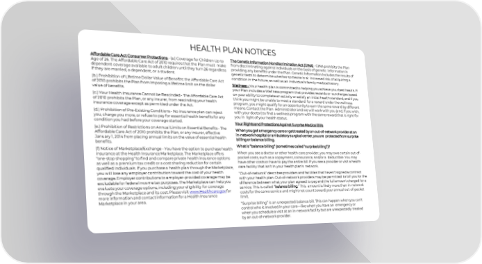 HEALTH PLAN NOTICES Affordable Care Act Consumer Protections -(a.) Coverage for Children Up to The Genetic Information Nondiscrimination Act (GINA) - GINA prohibits the Plan Age of 26. The Affordable Care Act of 2010 requires that the Plan must make from discriminating against individuals on the basis of genetic information in dependent coverage available to adult children until they turn 26 regardless providing any benefits under the Plan. Genetic information includes the results of if they are married, a dependent, or a student. genetic tests to determine whether someone is at increased risk of acquiring a (b.) Prohibition of Lifetime Dollar Value of Benefits: the Affordable Care Act condition in the future, as well as an individual’s family medicalhistory. of 2010 prohibits the Plan from imposing a lifetime limit on the dollar Wellness -Your health plan is committed to helping you achieve your best health. If value ofbenefits. your Plan includes a Wellness program that provides rewards or surcharges based (c.) Your Health Insurance Cannot be Rescinded -The Affordable Care Act on your ability to complete an activity or satisfy an initial health standard, and if you of 2010 prohibits the Plan, or any insurer, from rescinding your health think you might be unable to meet a standard for a reward under the wellness insurance coverage except as permitted under theAct. program, you might qualify for an opportunity to earn the same reward by different means. Contact the Plan Administrator and we will work with you (and, if you wish, (d.) Prohibition of Pre-Existing Conditions - No insurance plan can reject with your doctor) to find a wellness program with the same reward that is right for you, charge you more, or refuse to pay for essential health benefits for any you in light of your healthstatus. condition you had before your coveragestarted. YourRightsand ProtectionsAgainstSurpriseMedicalBills (e.) Prohibition of Restrictions on Annual Limits on Essential Benefits - The Whenyougetemergencycareorgettreatedbyanout-of-networkprovideratan Affordable Care Act of 2010 prohibits the Plan, or any insurer, effective in-networkhospital orambulatorysurgicalcenter,youare protectedfromsurprise January 1, 2014 from placing annual limits on the value of essential health billingorbalancebilling. benefits. (f) Notice of Marketplace/Exchange -You have the option to purchase health What is “balance billing” (sometimes called “surprisebilling”)? insurance at the Health Insurance Marketplace. The Marketplace offers When you see a doctor or other health care provider, you may owe certain out-of- "one-stop shopping" to find and compare private health insurance options pocket costs, such as a copayment, coinsurance, and/or a deductible. You may as well as a premium tax credit or a cost sharing reduction for certain have other costs or have to pay the entire bill if you see a provider or visit a health qualified individuals. If you purchase a health plan through the Marketplace, care facility that isn’t in your health plan’s network. you will lose any employer contribution toward the cost of your health “Out-of-network” describes providers and facilities that haven’t signed a contract coverage. Employer contributions to employer-provided coverage may be with your health plan. Out-of-network providers may be permitted to bill you for the excludable for federal income tax purposes. The Marketplace can help you difference between what your plan agreed to pay and the full amount charged for a evaluate your coverage options, including your eligibility for coverage service. This is called “balance billing.” This amount is likely more than in-network through the Marketplace and its cost. Please visit www.Healthcare.gov for costs for the same service and might not count toward your annual out-of-pocket more information and contact information for a Health Insurance limit. Marketplace in yourarea. “Surprise billing” is an unexpected balance bill. This can happen when you can’t control who is involved in your care—like when you have an emergency or when you schedule a visit at an in-network facility but are unexpectedly treated by an out-of-networkprovider.
