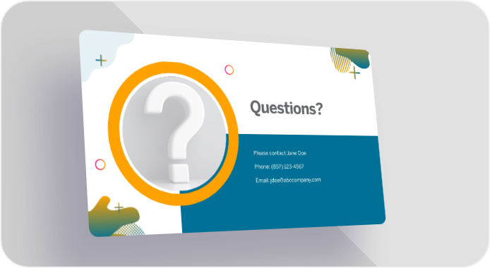 Questions? Please contact Jane Doe Phone: (857)123-4567 Email:[email protected] ABC Company Onboarding Deck Page 21 Page 23