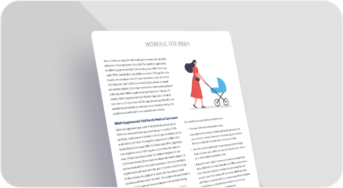 WORKING FOR BB&N leave, continuous only, for child bonding immediately after the birth, adoption or foster placement of a child. The eligibility requirements for BB&N Supplemental Paid Child Bonding Leave di昀昀er from those under PFML. Speci昀椀cally, to be eligible to receive 100% pay for up to 8 weeks, the employee must: (1) have completed at least 12 months of employment and 1,250 hours of work; (2) be actively employed and bene昀椀ts eligible; (3) not have received 8 or more weeks paid leave under any other BB&N supplemental paid leave within the past 12 months. BB&N Supplemental Paid Child Bonding Leave is available one time in a 12-month period. This supplemental paid bene昀椀t is not available for periods that an employee is not normally working. This supplemental paid bene昀椀t is not available intermittently. BB&N Supplemental Paid Family Medical Care Leave BB&N will supplement pay under PFML for family medical care to The conditions for a faculty leave of absence are: 100% of an employee’s gross pay, providing up to 6 weeks of 100% • The leave is limited to one academic year. paid leave, continuous or intermittent, for the care of a family member as de昀椀ned by the FMLA. The eligibility requirements for BB&N Paid • Every e昀昀ort will be made to reinstate the faculty member to the Family Medical Care Leave di昀昀er from those under PFML. Speci昀椀cally, same position, however, there may be extenuating circumstances to be eligible to receive 100% pay for up to 6 weeks, the employee that do not allow for reinstatement to the same position. must: (1) have completed at least 12 months of employment and • Since the school needs to plan for necessary personnel changes, 1,250 hours of work; (2) be actively employed and bene昀椀ts eligible; (3) faculty on leave must con昀椀rm by the end of January their intent to not have received 8 or more weeks paid leave under any other BB&N return for the following academic year. supplemental paid leave within the past 12 months; and (4) be caring • During the leave, subject to terms and conditions of applicable for their spouse, son, daughter or parent who has a serious health plans, BB&N will continue all bene昀椀ts via COBRA, as they existed condition as de昀椀ned under the FMLA. This supplemental paid bene昀椀t is and at the same employee contribution rates during the prior not available for periods that an employee is not normally working. academic year. Since faculty will not receive a BB&N paycheck The maximum amount of paid BB&N supplemental bene昀椀ts is 12 while they are on leave, they must make arrangements in advance weeks per bene昀椀t year. with the Payroll and Bene昀椀ts Administrator to pay for any applicable required employee contributions. Unpaid Personal Leave of Absence for Faculty • All BB&N technology (i.e. laptops) and property should be Whenever possible, the school will grant unpaid personal leaves of returned to the appropriate department prior to the start of the absence, unrelated to any medical reason or leave covered by any leave. other BB&N policy, for faculty who have been at the School for at Unpaid Personal Leave of Absence for Sta昀昀 least 10 years. For the purposes of calculating eligibility for this leave, years worked at 80% time or more will be considered equal to one Unpaid personal leaves for sta昀昀 may be granted, at the School’s year of service. Years in which a faculty member worked less than 80% discretion, taking into consideration the reason for the request, length will be calculated using the actual percentage worked. The school’s of employment, prior work performance, and the e昀昀ects the leave may current needs and ability to 昀椀nd a suitable and quali昀椀ed replacement have on the school. Every e昀昀ort will be made to reinstate to the same will in昀氀uence the decision to grant a leave without pay, at the school’s position, however, there may be extenuating circumstances that do not discretion. Those wishing to have a leave without pay should submit allow for reinstatement to the same position. Formal requests should a formal written request to the Head of School with a copy to the be submitted to the Human Resources Director, and/or the Chief appropriate Campus Director by January 31. Operating/Financial O昀케cer. - 15 -
