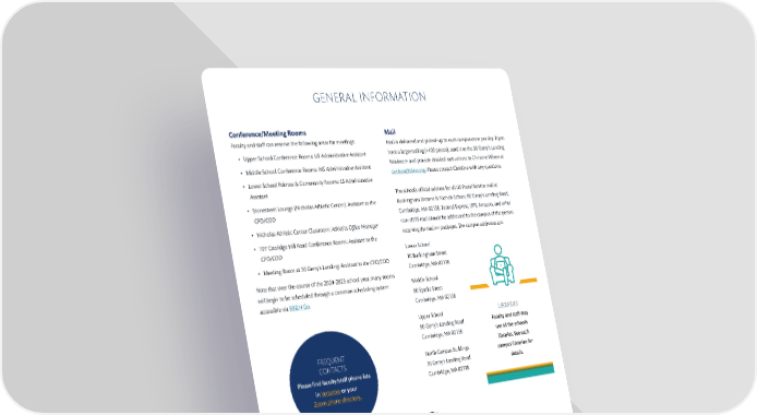 GENERAL INFORMATION Conference/Meeting Rooms Mail Faculty and sta昀昀 can reserve the following areas for meetings: Mail is delivered and picked-up to each campus once per day. If you • Upper School Conference Rooms: US Administrative Assistant have a large mailing (>100 pieces), send it to the 30 Gerry’s Landing • Middle School Conference Rooms: MS Administrative Assistant Mailroom and provide detailed instructions to Christine Wilson at [email protected]. Please contact Christine with any questions. • Lower School Pokross & Community Rooms: LS Administrative Assistant The school’s o昀케cial address for all US Postal Service mail is: • Stonestreet Lounge (Nicholas Athletic Center): Assistant to the Buckingham Browne & Nichols School, 80 Gerry’s Landing Road, CFO/COO Cambridge, MA 02138. Federal Express, UPS, Amazon, and other • Nicholas Athletic Center Classroom: Athletics O昀케ce Manager non-USPS mail should be addressed to the campus of the person receiving the mail or packages. The campus addresses are: • 197 Coolidge Hill Road Conference Rooms: Assistant to the CFO/COO Lower School • Meeting Room at 30 Gerry’s Landing: Assistant to the CFO/COO 10 Buckingham Street Cambridge, MA 02138 Note that over the course of the 2024-2025 school year, many rooms will begin to be scheduled through a common scheduling system Middle School accessible via BB&N Go. 80 Sparks Street Cambridge, MA 02138 Upper School LIBRARIES 80 Gerry’s Landing Road Faculty and sta昀昀 may Cambridge, MA 02138 use all the school’s FREQUENT libraries. See each CONTACTS North Campus Buildings campus librarian for Please 昀椀nd faculty/sta昀昀 phone lists 30 Gerry’s Landing Road details. in Veracross or your Cambridge, MA 02138 Zoom phone directory. - 7 -