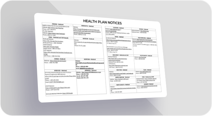 HEALTH PLAN NOTICES INDIANA –Medicaid MINNESOTA –Medicaid LOUISIANA –Medicaid NEVADA –Medicaid Healthy Indiana Plan for low-income adults 19-64 Website: Website: Medicaid Website: www.medicaid.la.govor http://dhcfp.nv.gov Website: http://www.in.gov/fssa/hip/ https://mn.gov/dhs/people-we-serve/children-and- www.ldh.la.gov/lahipp Medicaid Phone: 1-800-992-0900 Phone: 1-877-438-4479 families/health-care/health-care-programs/programs- Phone: 1-888-342-6207 (Medicaid hotline) or 1-855- All other Medicaid and-services/other-insurance.jsp 618-5488 (LaHIPP) Website: https://www.in.gov/medicaid/ Phone: 1-800-657-3739 MAINE –Medicaid NEW HAMPSHIRE –Medicaid Phone 1-800-457-4584 Enrollment Website: Website: https://www.dhhs.nh.gov/programs- IOWA –Medicaid and CHIP (Hawki) MISSOURI –Medicaid https://www.maine.gov/dhhs/ofi/applications-forms services/medicaid/health-insurance-premium-program Medicaid Website: Website: Phone: 1-800-442-6003 Phone: 603-271-5218 https://dhs.iowa.gov/ime/members http://www.dss.mo.gov/mhd/participants/pages/hipp. TTY: Maine relay 711 Toll free number for the HIPP program: 1-800-852-3345, Medicaid Phone: 1-800-338-8366 htm ext 5218 Hawki Website: Phone: 573-751-2005 Private Health Insurance Premium Webpage: http://dhs.iowa.gov/Hawki https://www.maine.gov/dhhs/ofi/applications-forms Hawki Phone: 1-800-257-8563 Phone: -800-977-6740. HIPP Website: TTY: Maine relay 711 https://dhs.iowa.gov/ime/members/medicaid-a-to- z/hipp NEW JERSEY –Medicaid and CHIP SOUTH DAKOTA -Medicaid Medicaid Website: http://dss.sd.gov HIPP Phone: 1-888-346-9562 Website: KANSAS –Medicaid MONTANA –Medicaid http://www.state.nj.us/humanservices/ Phone: 1-888-828-0059 Website: https://www.kancare.ks.gov/ Website: dmahs/clients/medicaid/ Phone: 1-800-792-4884 http://dphhs.mt.gov/MontanaHealthcarePrograms/HI Medicaid Phone: 609-631-2392 PP CHIP Website: Phone: 1-800-694-3084 http://www.njfamilycare.org/index.html Email: [email protected] CHIP Phone: 1-800-701-0710 KENTUCKY –Medicaid NEBRASKA –Medicaid NEW YORK –Medicaid TEXAS –Medicaid Kentucky Integrated Health Insurance Premium Website: http://www.ACCESSNebraska.ne.gov Website: Website: http://gethipptexas.com/ Payment Program (KI-HIPP) Website: Phone: 1-855-632-7633 https://www.health.ny.gov/health_care/medicaid/ Phone: 1-800-440-0493 https://chfs.ky.gov/agencies/dms/member/Pages/kihip Lincoln: 402-473-7000 Phone: 1-800-541-2831 p.aspx Omaha: 402-595-1178 NORTH CAROLINA –Medicaid UTAH –Medicaid and CHIP Phone: 1-855-459-6328 Website: https://medicaid.ncdhhs.gov/ Medicaid Website: https://medicaid.utah.gov/ Email: [email protected] Phone: 919-855-4100 CHIP Website: http://health.utah.gov/chip Phone: 1-877-543-7669 KCHIP Website: NORTH DAKOTA –Medicaid VERMONT–Medicaid https://kidshealth.ky.gov/Pages/index.aspx Website: Website: http://www.greenmountaincare.org/ Phone: 1-877-524-4718 http://www.nd.gov/dhs/services/medicalserv/medica Phone: 1-800-250-8427 Kentucky Medicaid Website: https://chfs.ky.gov id/ Phone: 1-844-854-4825