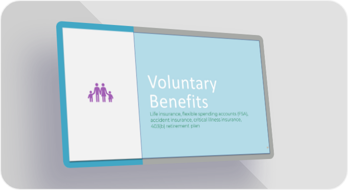 Voluntary Benefits Life insurance, flexible spending accounts (FSA), accident insurance, critical illness insurance, 403(b) retirement plan 17