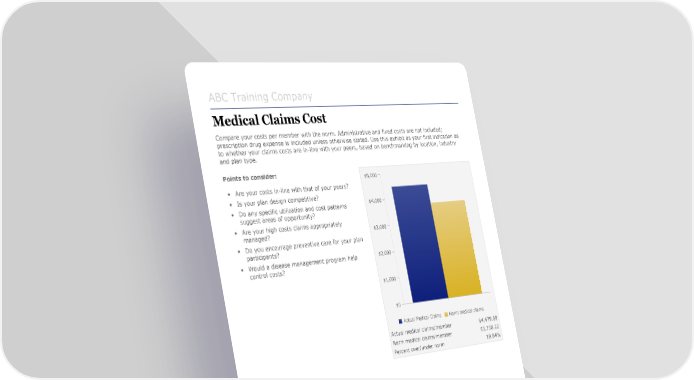 ABC Training Company Medical Claims Cost Compare your costs per member with the norm. Administrative and fixed costs are not included; prescription drug expense is included unless otherwise stated. Use this exhibit as your first indication as to whether your claims costs are in-line with your peers, based on benchmarking by location, industry and plan type. Points to consider: $5,000 • Are your costs in-line with that of your peers? • Is your plan design competitive? • Do any specific utilization and cost patterns $4,000 suggest areas of opportunity? • Are your high costs claims appropriately managed? $3,000 • Do you encourage preventive care for your plan participants? • Would a disease management program help $2,000 control costs? $1,000 $0 Actual Medical Claims Norm medical claims Actual medical claims/member $4,479.89 Norm medical claims/member $3,738.22 Percent over/under norm 19.84% Norm source: Copyright ©2018 Truven Health Analytics Inc. MarketScan® Research Databases. All rights reserved. Copyright @ 2017 Zywave, Inc. 351737 - January 1, 2018 - December 31, 2018[5]
