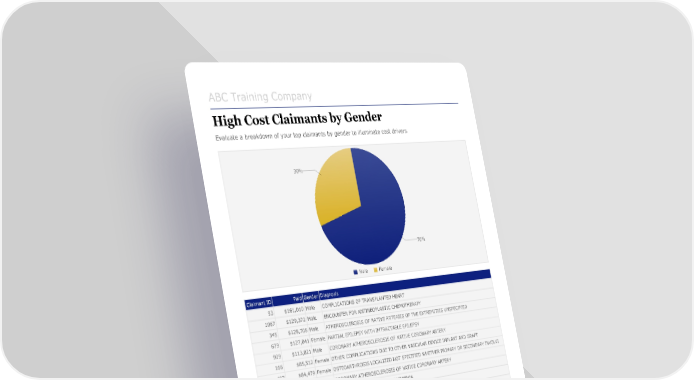 ABC Training Company High Cost Claimants by Gender Evaluate a breakdown of your top claimants by gender to illuminate cost drivers. 30% 70% Male Female Claimant ID Paid Gender Diagnosis 93 $161,010 Male COMPLICATIONS OF TRANSPLANTED HEART 1067 $129,372 Male ENCOUNTER FOR ANTINEOPLASTIC CHEMOTHERAPY 345 $128,708 Male ATHEROSCLEROSIS OF NATIVE ARTERIES OF THE EXTREMITIES UNSPECIFIED 679 $127,041 Female PARTIAL EPILEPSY WITH IMTRACTABLE EPILEPSY 909 $113,021 Male CORONARY ATHEROSCLEROSIS OF NATIVE CORONARY ARTERY 166 $85,512 Female OTHER COMPLICATIONS DUE TO OTHER VASCULAR DEVICE IMPLANT AND GRAFT 407 $84,479 Female OSTEOARTHROSIS LOCALIZED NOT SPECIFIED WHETHER PRIMARY OR SECONDARY INVOLVI 949 $63,100 Male CORONARY ATHEROSCLEROSIS OF NATIVE CORONARY ARTERY 995 $57,602 Male STAPHYLOCOCCUS AUREUS SEPTICEMIA 533 $56,604 Male ATRIOVENTRICULAR BLOCK COMPLETE $1,006,449 Total Paid Points to consider: • What factors contribute to higher costs among either gender? • Are there early detection or disease management strategies that could reduce costs related to specific diagnoses? • Would setting stop-loss contracts be appropriate? Copyright @ 2017 Zywave, Inc. 351737 - January 1, 2018 - December 31, 2018[16]