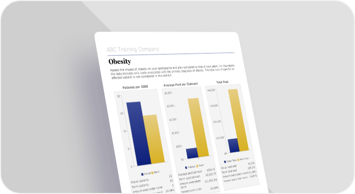 ABC Training Company Obesity Assess the impact of obesity on your participants and plan compared to that of your peers. For this report, the data includes only costs associated with the primary diagnosis of obesity. The total cost of care for an affected patient is not considered in this exhibit. Patients per 1000 Average Paid per Claimant Total Paid 20 $2,500 $40,000 $2,000 15 $30,000 $1,500 10 $20,000 $1,000 5 $10,000 $500 0 $0 $0 Actual Norm Average Norm Actual Total Norm Total Actual patients 23 Average paid/claimant $362.41 Actual total paid $8,335 Norm patients 18 Norm paid/claimant $2,215.75 Norm total paid $39,341 Amount over/under norm 5 Amount over/under ($1,853.34) Amount over/under norm($31,006) Percent over/under norm 29.54% norm Percent over/under norm -78.81% Percent over/under -83.64% norm Points to consider: • Is there an opportunity to better manage costs related to obesity? • Have you considered starting the conversation with a communication campaign? For general health information on obesity, refer to: • Centers for Disease Control Prevention, www.cdc.gov/obesity. Norm source: Copyright ©2018 Truven Health Analytics Inc. MarketScan® Research Databases. All rights reserved. Copyright @ 2017 Zywave, Inc. 351737 - January 1, 2018 - December 31, 2018[64]
