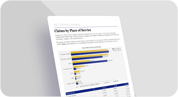 ABC Training Company Claims by Place of Service Gauge your plan’s costs by place of service compared to that of your peers. For this report, the data includes both facility fees (room and board, supplies, and ancillary services) and professional services fees (physician, surgeon, and anesthesiologist). The place of service categories used below are prescribed by the Centers for Medicare & Medicaid Services (CMS). Note: Some carriers may use different conventions and the settings in your analysis may vary. Total Paid by Place of Service Norm Total Paid Inpatient Hospital Actual Total Paid Outpatient Hospital $1,233,075 Office $693,910 $1,408,339 Emergency Room $415,511 $96,529 Home $218,601 $56,494 Other $63,960 $33,807 Surgery Center $33,234 $71,618 $0 $200,000 $400,000 $600,000 $800,000 $1,200,000 $1,600,000 Place of Service Actual Norm Variance Inpatient Hospital 34.26% 34.80% -1.56% Outpatient Hospital 33.70% 27.72% 21.58% Office 15.60% 31.66% -50.73% Emergency Room 9.34% 2.17% 330.45% Home 4.91% 1.27% 286.95% Other 1.44% 0.76% 89.19% Surgery Center 0.75% 1.61% -53.60% Points to consider: • Is there an appropriate mix of health care settings being used? Explore normative comparison in targeted areas: office visits, emergency room, inpatient hospital, etc. to discover specific opportunities. Norm source: Copyright ©2018 Truven Health Analytics Inc. MarketScan® Research Databases. All rights reserved. Copyright @ 2017 Zywave, Inc. 351737 - January 1, 2018 - December 31, 2018[9]