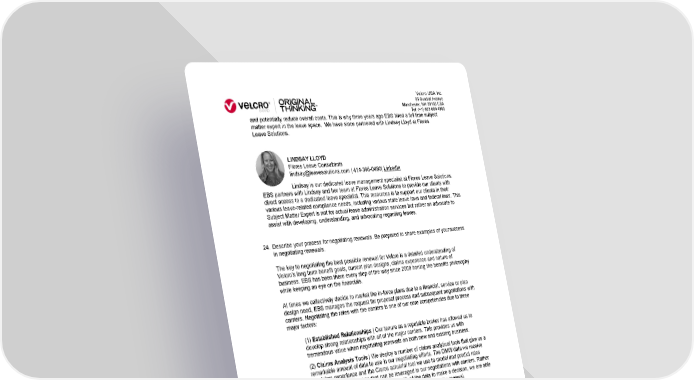 Velcro USA Inc. 95 Sundial Avenue Manchester, NH 03103 USA Tel: (+1) 603 669 4880 and potentially reduce overall costs. This is why three years ago EBS hired a full time subject matter expert in the leave space. We have since partnered with Lindsay Lloyd at Flores Leave Solutions. LINDSAY LLOYD Flores Leave Consultants [email protected] | 414-395-0480| LinkedIn Lindsay is our dedicated leave management specialist at Flores Leave Solutions. EBS partners with Lindsay and her team at Flores Leave Solutions to provide our clients with direct access to a dedicated leave specialist. This resources is to support our clients in their various leave-related compliance needs, including various state leave laws and federal laws. This Subject Matter Expert is not for actual leave administration services but rather an advocate to assist with developing, understanding, and advocating regarding leaves. 24. Describe your process for negotiating renewals. Be prepared to share examples of your success in negotiating renewals. The key to negotiating the best possible renewal for Velcro is a detailed understanding of Velcro’s long term benefit goals, current plan designs, claims experience and nature of business. EBS has been there every step of the way since 2009 honing the benefits philosophy while keeping an eye on the financials. At times we collectively decide to market the in-force plans due to a financial, service or plan design need, EBS manages the request for proposal process and subsequent negotiations with carriers. Negotiating the rates with the carriers is one of our core competencies due to three major factors: (1) Established Relationships | Our tenure as a reputable broker has allowed us to develop strong relationships with all of the major carriers. This provides us with tremendous value when negotiating renewals on both new and existing business. (2) Claims Analysis Tools | We deploy a number of claims analytical tools that give us a remarkable amount of data to use in our negotiating efforts. The DMW data we receive on claims experience and the Claros actuarial tool we use to model and predict rates provides us with solid data that can be leveraged in our negotiations with carriers. Rather than relying on the carriers to provide us with all the data to make a decision, we are able to bring additional data to support or dispute the proposed carrier renewal. (3) Underwriters on EBS Team | EBS currently has 7 former underwriters on our team that have underwritten new and renewal business on medical and ancillary products. This expertise has proved to be very valuable for our clients when we are working on renewals as we know the process and how the coverages are priced Current Client Examples of Renewal Negotiations: Example #1: Self-Funding | We have an in-force client that we started our relationship with in August of 2018 when they had 4 different entities, 14 lines of coverage amongst them and 15 unique vendors in force. Needless to say, their lives were difficult from an administrative standpoint and their benefit costs were extremely high. We worked with the group to consolidate their benefit plans into 1 common offering for all employees that had only 4 lines of coverage and 5 unique vendors for their January 1st renewal cycle. This included extensive financial 15