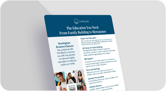 The Education You Need: From Family Building to Menopause Expert-led Education 100+ courses built with experts from top institutions like Buckingham Harvard, Oxford, Yale, and McGill—breaking down critical issues and decisions without bias Browne & Nichols has partnered with All Forms of Family Building The latest information and data on topics like FertilityIQ to provide unassisted conception, fertility treatment, miscarriage, you with the premier foster, adoption, egg freezing, and surrogacy on-demand digital Menopause education to help you 10 courses on every critical subject from hot flashes to build your family. hormone therapy taught by preeminent global menopause experts across a variety of disciplines Race and Heritage Dedicated courses for hopeful parents who are of Black, Latinx, South Asian, and East Asian heritage Inclusive Perspectives Sign Up Here Family building paths for gay, lesbian, transgender, and unpartnered individuals Verified Reviews 50,000+ patient written reviews on every fertility doctor and clinic in the United States Saves Time, Money, and Stress We help you make smarter, data-driven choices with otherwise impossible-to-access expert help. Available for you, a partner, or a friend—anytime, anywhere For membership access: We’re here to help. Visit https://bbn.fertilityiq.com Please reach out to [email protected] Enter Confirmation Code: BB&NGO! This membership is available to you and two others with any questions. in your support network.
