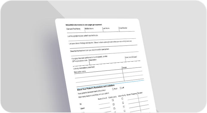 REQUIRED information in case pages get separated: Claimant First Name Middle Name Last Name Claim Number List the symptoms your patient reported to you. List your clinical findings and reports. (Please include copies of results when you return this form to us) Describe the treatment plan you recommend for your patient. If surgery has been performed or is anticipated, provide: CPT-4 procedure code Description Date (mm/dd/yyyy) List any medications prescribed: Medication name Dosage About Your Patient's Restrictions and Limitations Your patient's dominant hand (Check One): Right Left How many hours in a workday can your patient: Hours (0 to 8) Continuously Intermittently Breaks Frequency Duration Sit Stand Walk Climb Twist/Bend/Stoop Reach above shoulder level Reach front and side at desk level Perform find finger movements Perform eye/hand movements APS-STDLTD-5320 (06/20) Page 3 of 7