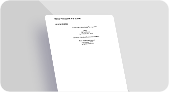 NOTICE FOR RESIDENTS OF ILLINOIS GCERT2000 11 notice/il IMPORTANT NOTICE To make a complaint to MetLife, You may write to: MetLife 200 Park Avenue New York, New York 10166 The address of the Illinois Department of Insurance is: Illinois Department of Insurance Public Services Division Springfield, Illinois 62767