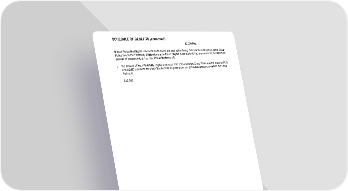 SCHEDULE OF BENEFITS (continued) GCERT2000 28 sch $2,000,000. If Your Portability Eligible Insurance ends due to the end of the Group Policy or the amendment of the Group Policy to end the Portability Eligible Insurance for an eligible class of which You are a member, the maximum amount of insurance that You may Port is the lesser of: ● the amount of Your Portability Eligible Insurance that ends under the Group Policy less the amount of Life and AD&D insurance for which You become eligible under any group policy issued to replace this Group Policy; or ● $10,000.