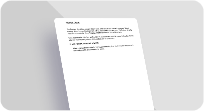 FILING A CLAIM GCERT2000 49 claim 10/04 The Employer should have a supply of claim forms. Obtain a claim form from the Employer and fill it out carefully. Return the completed claim form with the required Proof to the Employer. The Employer will certify Your insurance under the Group Policy and send the certified claim form and Proof to Us. When we receive the claim form and Proof We will review the claim and, if We approve it, We will pay benefits subject to the terms and provisions of this certificate and the Group Policy. CLAIMS FOR LIFE INSURANCE BENEFITS When a claimant files a claim for Life Insurance benefits , Proof should be sent to Us as soon as is reasonably possible after the death of an insured.