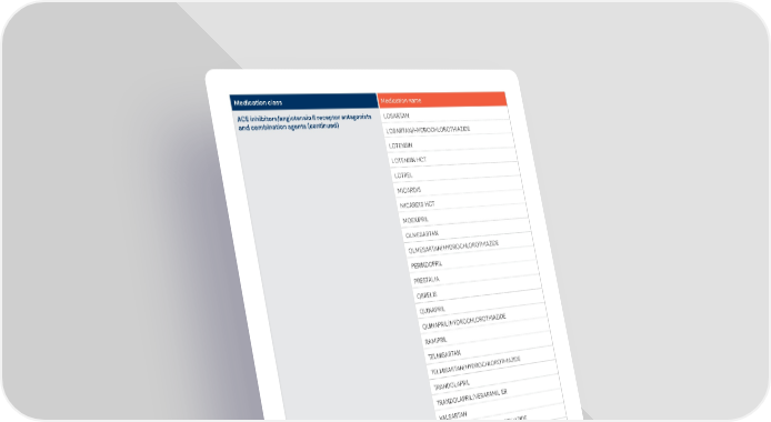 4 Medication class Medication name ACE inhibitors/angiotensin II receptor antagonists and combination agents (continued) LOSARTAN LOSARTAN/HYDROCHLOROTHIAZIDE LOTENSIN LOTENSIN HCT LOTREL MICARDIS MICARDIS HCT MOEXIPRIL OLMESARTAN OLMESARTAN/HYDROCHLOROTHIAZIDE PERINDOPRIL PRESTALIA QBRELIS QUINAPRIL QUINAPRIL/HYDROCHLOROTHIAZIDE RAMIPRIL TELMISARTAN TELMISARTAN/HYDROCHLOROTHIAZIDE TRANDOLAPRIL TRANDOLAPRIL/VERAPAMIL ER VALSARTAN VALSARTAN/HYDROCHLOROTHIAZIDE VASERETIC VASOTEC ZESTORETIC ZESTRIL Agents for chemical dependency ACAMPROSATE CALCIUM BRIXADI BUPRENORPHINE SUBLINGUAL BUPRENORPHINE/NALOXONE SUBLINGUAL DEPADE