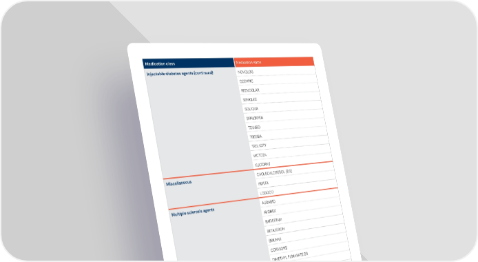 19 Medication class Medication name Injectable diabetes agents (continued) NOVOLOG OZEMPIC REZVOGLAR SEMGLEE SOLIQUA SYMLINPEN TOUJEO TRESIBA TRULICITY VICTOZA XULTOPHY Miscellaneous CHOLECALCIFEROL (D3) INPEFA LODOCO Multiple sclerosis agents AUBAGIO AVONEX BAFIERTAM BETASERON BRIUMVI COPAXONE DIMETHYL FUMARATE DR EXTAVIA FINGOLIMOD GILENYA GLATIRAMER KESIMPTA LEMTRADA MAVENCLAD MAYZENT OCREVUS PLEGRIDY