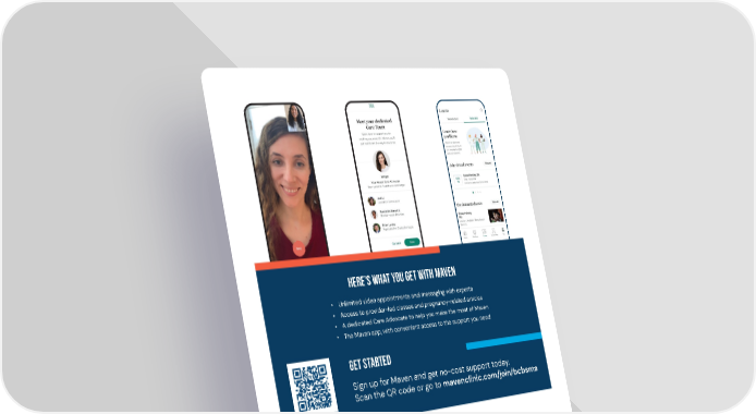 002606864 (2/24) Registered Marks of the Blue Cross and Blue Shield Association. Registered Marks are the property of their respective owners. 2024 Blue Cross and Blue Shield of Massachusetts, Inc., or Blue Cross and Blue Shield of Massachusetts HMO Blue, Inc. Blue Cross Blue Shield of Massachusetts complies with applicable federal civil rights laws and does not discriminate on the basis of race, color, national origin, age, disability, sex, sexual orientation, or gender identity. ATTENTION: If you dont speak English, language assistance services, free of charge, are available to you. Call Member Service at the number on your ID card (TTY: 711 ). ATENCIN: Si habla espaol, tiene a su disposicin servicios gratuitos de asistencia con el idioma. Llame al nmero de Servicio al Cliente que figura en su tarjeta de identificacin (TTY: 711 ). ATENO: Se fala portugus, so-lhe disponibilizados gratuitamente servios de assistncia de idiomas. Telefone para os Servios aos Membros, atravs do nmero no seu carto ID (TTY: 711 ). Unlimited video appointments and messaging with experts Access to provider-led classes and pregnancy-related articles A dedicated Care Advocate to help you make the most of Maven The Maven app, with convenient access to the support you need Heres what you get with Maven Get started Sign up for Maven and get no-cost support today. Scan the QR code or go to mavenclinic.com/join/bcbsma