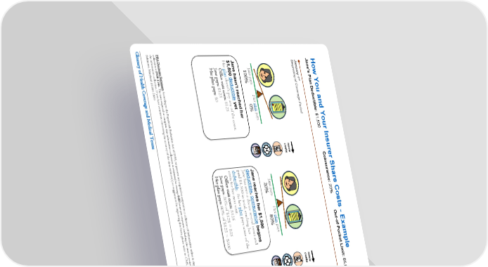 Glossary of Health Coverage and Medical Terms Page 6 of 6 How You and Your Insurer Share Costs - Example Janes Plan Deductible: $1,500 Coinsurance: 20% Out - of - Pocket Limit: $5,000 Januar y 1 st Beginning of Coverage Period December 31 st End of Coverage Period Her plan pays 0% Jane hasnt reached her $1,500 deductible yet Her plan doesnt pay any of the costs. Office visit costs: $125 Jane pays: $125 Her plan pays: $0 Jane pays 100% more costs Jane pays 20% Her plan pays 80% Jane reaches her $ 1,500 deductible , coinsurance begins Jane has seen a doctor several times and paid $1,500 in total , reaching her deductible . So h er plan pays some of the costs for her next visit. Office visit costs: $125 Jane pays: 20% of $125 = $2 5 Her plan pays: 80% of $ 125 = $ 100 more costs Jane pays 0% Her plan pays 100% Jane reaches her $5,000 out - of - pocket limit Jane has seen the doctor often and paid $5,000 in total. Her plan pays the full cost of her cove red health care services for the rest of the year. Office visit costs: $125 Jane pays: $0 Her plan pays: $125 PRA Disclosure Statement: Accordin g to the Paperwork Reduction Act of 1995, no persons are required to respond to a collection of information unless it display s a valid OMB control number. The valid OMB control number for this information collection is 0938 - 1146 . The time required to complete this information collection is estimated to average 0.08 hours per response, including the time to review instructions, search existing data resources, gather the data needed, and complete and review the information collection. If you have comments concerning the accuracy of the time estimate(s) or suggestions for improving this form, please write to: CMS, 7500 Security Boulevard, Attn: PRA Reports Clearance Officer, Mail Stop C4 - 26 - 05, Baltimore, Maryland 21244 - 1850.