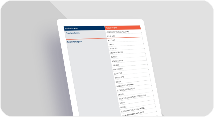 24 Medication class Medication name Prenatal vitamins ALL PRESCRIPTION FORMULATIONS FOLIC ACID Respiratory agents ACCOLATE ADVAIR ADVAIR HFA AIRDUO RESPICLICK ALVESCO ARNUITY ELLIPTA ASMANEX ASMANEX HFA BEYFORTUS BREO ELLIPTA BREYNA BUDESONIDE SUSPENSION BUDESONIDE/FORMOTEROL CINQAIR CROMOLYN SODIUM NEBULIZER SOLUTION DULERA FASENRA FLUTICASONE FUROATE/VILANTEROL FLUTICASONE PROPIONATE DISKUS FLUTICASONE PROPIONATE HFA FLUTICASONE/SALMETEROL MONTELUKAST NUCALA PULMICORT PULMICORT FLEXHALER QVAR REDIHALER SINGULAIR SPIRIVA RESPIMAT 1.25 MCG SYMBICORT