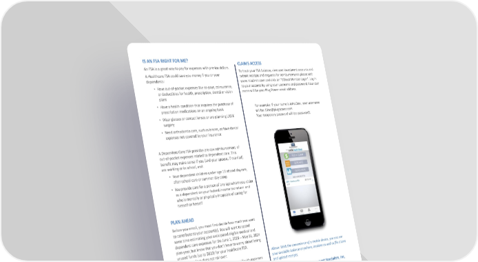 IS AN FSA RIGHT FOR ME? CLAIMS ACCESS An FSA is a great way to pay for expenses with pre-tax dollars. To track your FSA balance, view your investment accounts and A Healthcare FSA could save you money if you or your submit receipts and requests for reimbursements please visit dependents: www.rsiadmin.com and click on "1Cloud Member Login". Log in • Have out-of-pocket expenses like co-pays, coinsurance, to your account by using your username and password. Your user or deductibles for health, prescription, dental or vision name will be your Plug Power email address. plans • Have a health condition that requires the purchase of For example: If your name is John Doe , your username prescription medications on an ongoing basis will be: [email protected] • Wear glasses or contact lenses or are planning LASIK Your temporary password will be: password1 surgery • Need orthodontia care, such as braces, or have dental expenses not covered by your insurance A Dependent Care FSA provides pre-tax reimbursement of out-of-pocket expenses related to dependent care. This benefit may make sense if you (and your spouse, if married) are working or in school, and: • Your dependent children under age 13 attend daycare, after-school care or summer day camp • You provide care for a person of any age whom you claim as a dependent on your federal income tax return and who is mentally or physically incapable of caring for himself or herself PLAN AHEAD Before you enroll, you must first decide how much you want to contribute to your account(s). You will want to spend some time estimating your anticipated eligible medical and dependent care expenses for the June 1, 2023 – May 31, 2024 plan year, but know that you don’t have to worry about losing unused funds (up to $610) for your healthcare FSA. Dependent Care does not roll over. Above: With the convenience of a mobile device, you can see your available balance anywhere, anytime as well as file claims Throughout the year, you’ll likely find yourself with expenses and upload receipts. for yourself and your family that insurance won’t cover. By taking advantage of an FSA, you can actually reduce your Get started with the Reimbursement Specialists, Inc, taxable income and reduce your out-of-pocket expenses mobile app in Minutes when you use your FSA to pay for the things you’d purchase anyway. Simply download the Reimbursement Specialists, Inc. App for your Android or iPhone (also compatible with iPad® and iPod touch®) and log in using the same password you use to access *The amount you save in taxes with a Flexible Spending Account will vary the RSI consumer portal. depending on the amount you set aside in the account; your annual earnings; Questions? Contact the RSI Claims Department: whether or not you pay Social Security taxes; the number of exemptions and deductions you claim on your tax return; your tax bracket and your state and Toll Free Phone: 855-493-9859 local tax regulations. Check with your tax advisor for information on how E-mail: [email protected] participation will affect your tax savings. ©2019 All Rights Reserved WEX, Inc.