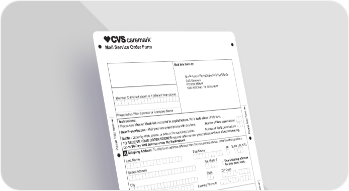 ® Mail Service Order Form Mail this form to: USVUUVTTVVTUUUVUUVUUVTTUUUTSUUSTSUUSSVUUTTVUVSUVTVSVUVSUSTUSUSTUV CVS Caremark PO BOX 659541 SAN ANTONIO, TX 78265-9541 Member ID # (if not shown or if different from above) Prescription Plan Sponsor or Company Name Instructions: Please use blue or black ink and print in capital letters. Fill in both sides of this form. New Prescriptions - Mail your new prescriptions with this form. Number of New prescriptions: Refills - Order by Web, phone, or write in Rx number(s) below. Number of Refill prescriptions: ORDER SOONER request refills or new prescriptions online at bluecrossma.org. TO RECEIVE YOUR Go to 90-Day Mail Service under My Medications. AShipping Address. To ship to an address different from the one printed above, enter the changes here. Last Name First Name MI Suffix (JR, SR) Street Address Apt./Suite # Use shipping address for this order only. City State ZIP Code Daytime Phone #: Evening Phone #: B Refills. To order mail service refills, enter your prescription number(s) here. 1) 2) 3) 4) 5) 6) 7) 8) CVS Caremark wants to provide you with high quality medicines at the best possible price. In order to do this, we will substitute equivalent generic medicines for brand name medicines whenever possible. If you do not want XVWRVXEVWLWXWHJHQHULFVSOHDVHSURYLGHVSHFL¿FLQVWUXFWLRQVLQFOXGLQJGUXJQDPHVLQWKH “Special Instructions” section of this form. CaremarkPCS Health, LLC (“CVS Caremark”) is an independent company that has been contracted to administer pharmacy benefits and provide certain pharmacy services for Blue Cross Blue Shield of Massachusetts. CVS Caremark is part of the CVS Health family of companies. Blue Cross Blue Shield of Massachusetts is an Independent Licensee of the Blue Cross and Blue Shield Association. We may package all of these prescriptions together unless you tell us not to. All claims for prescriptions submitted to CVS Caremark Mail Service Pharmacy using this form ZLOOEHVXEPLWWHGWR\RXUSUHVFULSWLRQEHQH¿WSODQIRUSD\PHQW,I\RXGRQRWZDQWWKHPVXEPLWWHG to your plan, do not use this form. You may call Customer Care to make alternate arrangements for submission of your order and payment. ©2020 CVS Caremark. All rights reserved. P13-N