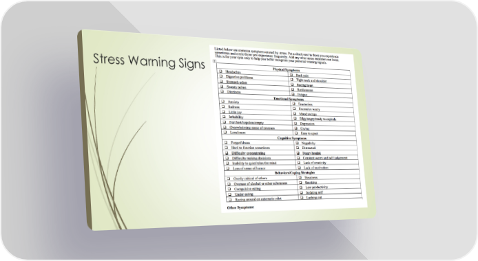 Stress Warning Signs SESSION #2 - A Mindful Way to Reduce Stress and Develop Resilience Page 11 Page 13