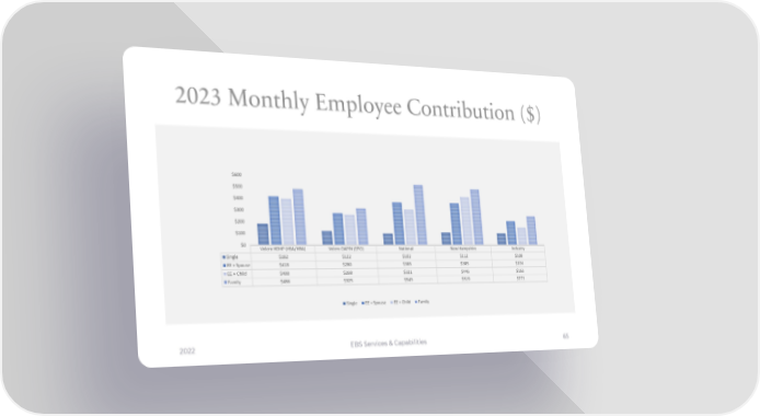 2023 Monthly Employee Contribution ($) $600 $500 $400 $300 $200 $100 $0 Velcro HDHP (HSA/HRA) Velcro OAPIN (EPO) National New Hampshire Industry Single $182 $122 $102 $112 $108 EE + Spouse $418 $280 $383 $385 $224 EE + Child $400 $268 $321 $446 $163 Family $486 $325 $549 $519 $271 Single EE + Spouse EE + Child Family 2022 EBS Services & Capabilities 65