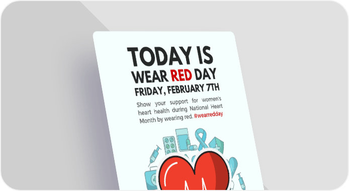 Wear Red Day is TodayPromotional Flyer TODAY IS WEAR RED DAY FRIDAY, FEBRUARY 7TH Show your support for women's heart health during National Heart Month by wearing red. #wearredday Page 1