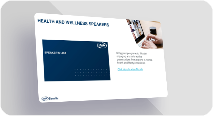 HEALTH AND WELLNESS SPEAKERS Bring your programs to life with engaging and informative presentations from experts in mental health and lifestyle medicine. Click Here to View Details